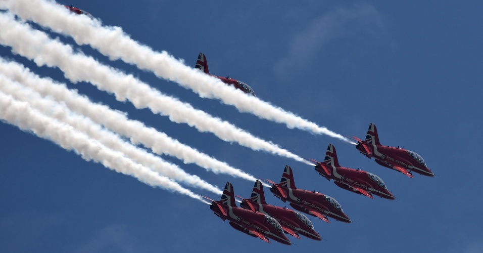 18.out.2016 - Equipe de acrobacias aéreas Red Arrows da Real Força Aérea da Grã-Bretanha voa sobre a Marina Barrage em CingapuraImagem: Roslan Rahman/AFPhttp://noticias.uol.com.br/album/2016/01/06/olho-magico-2016.htm#fotoNavId=prac3ce59c78e4fefd48e69e1105edf2820161018
